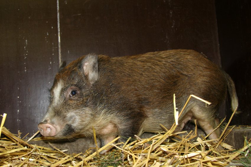 Noodgedwongen heeft het Natuurhulpcentrum zich ontfermd over het diertje. Het is niet heel duidelijk om welke soort varken het gaat. Het dier heeft heel wat kenmerken van een everzwijn en is mogelijk een kruising. Hij verblijft voorlopig in een buitenkooi, maar het is wel de bedoeling om de eigenaar terug te vinden. Indien die zich niet meldt binnen de 14 dagen, zal ons centrum op zoek gaan naar een goede nieuwe thuis.